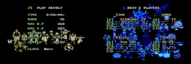 coletou, tempo que levou, inimigos mortos, saves, etc.